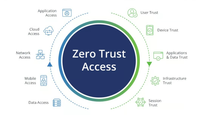 در این مدل، فرض بر این است که در شبکه هیچ کاربری قابل اعتماد نیست، چه از داخل شبکه چه خارج از آن. این روش با احراز هویت چندمرحلهای (MFA)، تحلیل رفتار کاربر (UEBA) و تقسیمبندی دقیق شبکه (Microsegmentation) همراه است.