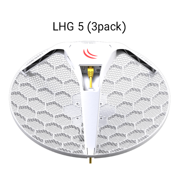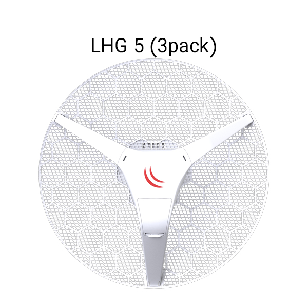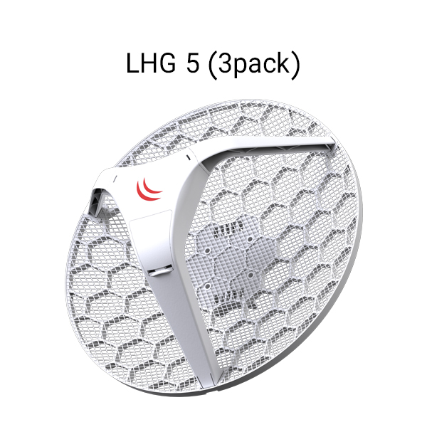 پک سهتایی MikroTik LHG 5 شامل سه دستگاه LHG 5 است که هرکدام ترکیبی از آنتن Grid و رادیوی بیسیم در باند 5GHz هستند. این محصول برای پیادهسازی لینکهای وایرلس نقطهبهنقطه (PTP) یا استفاده به عنوان CPE در زیرساختهای بیسیم طراحی شده است.