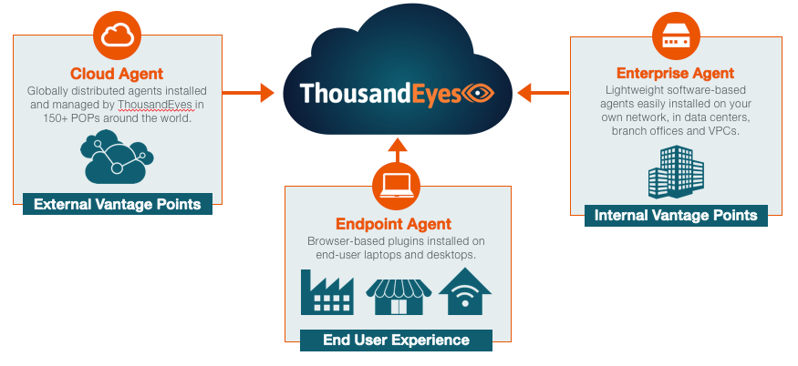 Thousand Eyes یک پلتفرم نظارت بر شبکه است که ابزارهایی برای تحلیل عملکرد شبکهها و برنامههای مبتنی بر اینترنت ارائه میدهد. این فناوری که در سال 2020 توسط شرکت سیسکو خریداری شد، به کاربران امکان میدهد تا به صورت جامع و در زمان واقعی عملکرد شبکهها را بررسی کنند. از ویژگیهای کلیدی Thousand Eyes میتوان به موارد زیر اشاره کرد: